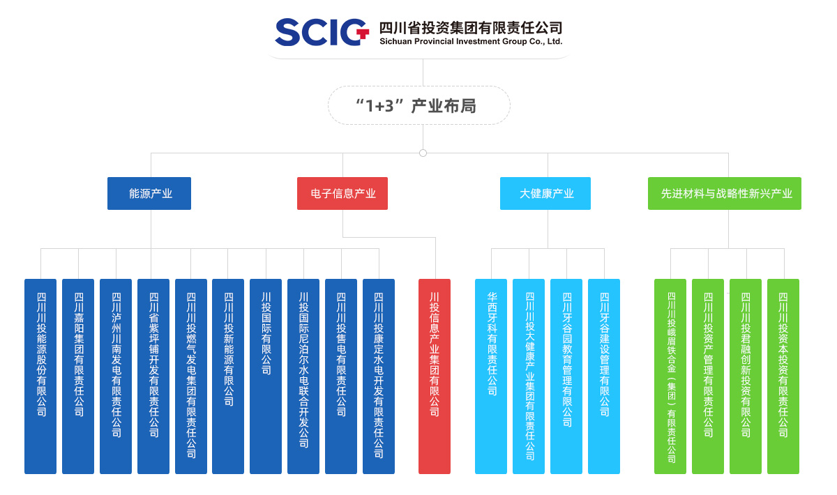 四川省投資集團(tuán)有限責(zé)任公司 四川川投能源股份有限公司 四川川投大健康產(chǎn)業(yè)集團(tuán)有限責(zé)任公司 四川嘉陽集團(tuán)有限責(zé)任公司 四川川投峨眉鐵合金(集團(tuán))有限責(zé)任公司 川投信息產(chǎn)業(yè)集團(tuán)有限公司 四川川投田灣河開發(fā)有限責(zé)任公司 四川瀘州川南發(fā)電有限責(zé)任公司 四川川投燃?xì)獍l(fā)電集團(tuán)有限責(zé)任公司 四川川投售電有限責(zé)任公司 四川川投峨眉旅游開發(fā)有限公司 四川川投興川建設(shè)有限責(zé)任公司 四川川投佳友物業(yè)有限責(zé)任公司 四川川投國際網(wǎng)球中心開發(fā)有限責(zé)任公司 四川省房地產(chǎn)開發(fā)投資有限責(zé)任公司 華西牙科有限責(zé)任公司 天府大數(shù)據(jù)國際戰(zhàn)略與技術(shù)研究院 西昌川投大健康科技有限公司 四川牙谷建設(shè)管理有限公司 四川川投新能源有限公司
