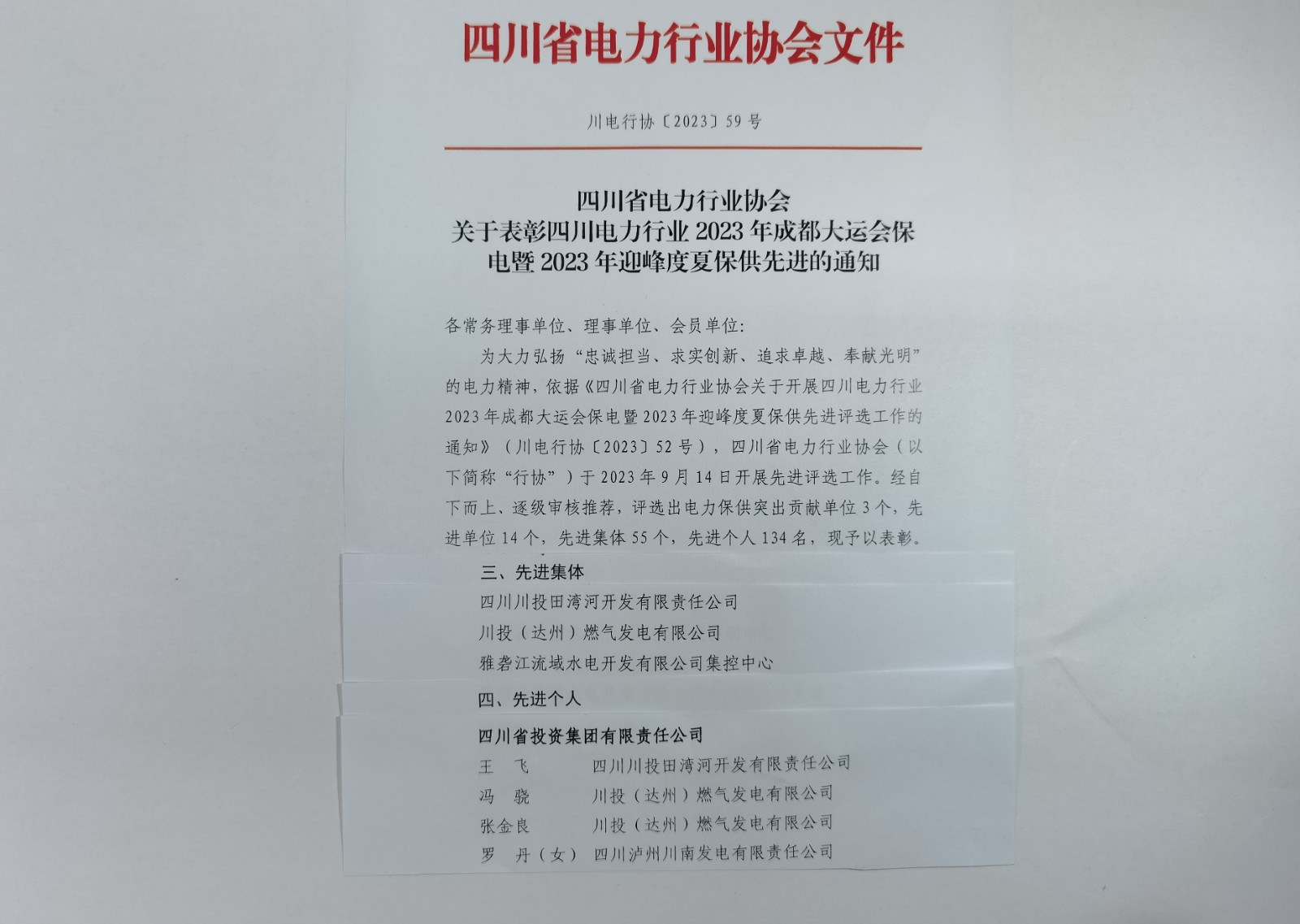 近日,由四川省電力行業(yè)協(xié)會(huì)組織開(kāi)展的2023年成都大運(yùn)會(huì)保電暨2023年迎峰度夏保供先進(jìn)評(píng)選結(jié)果揭曉,田灣河公司榮獲“先進(jìn)集體”,公司員工王飛榮獲“先進(jìn)個(gè)人”。
