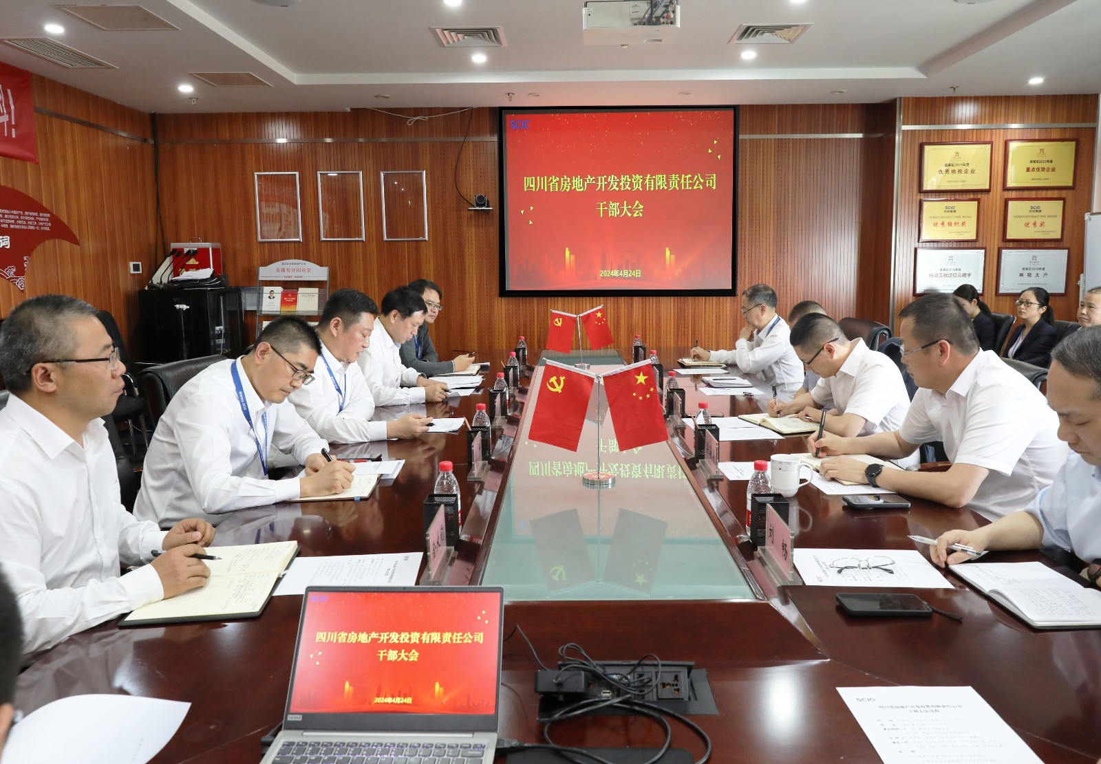 4月24日,川投房地產公司召開干部大會。集團公司財務總監(jiān)黃勁出席會議。川投房地產公司黨總支書記、董事長龔帝偉主持會議。