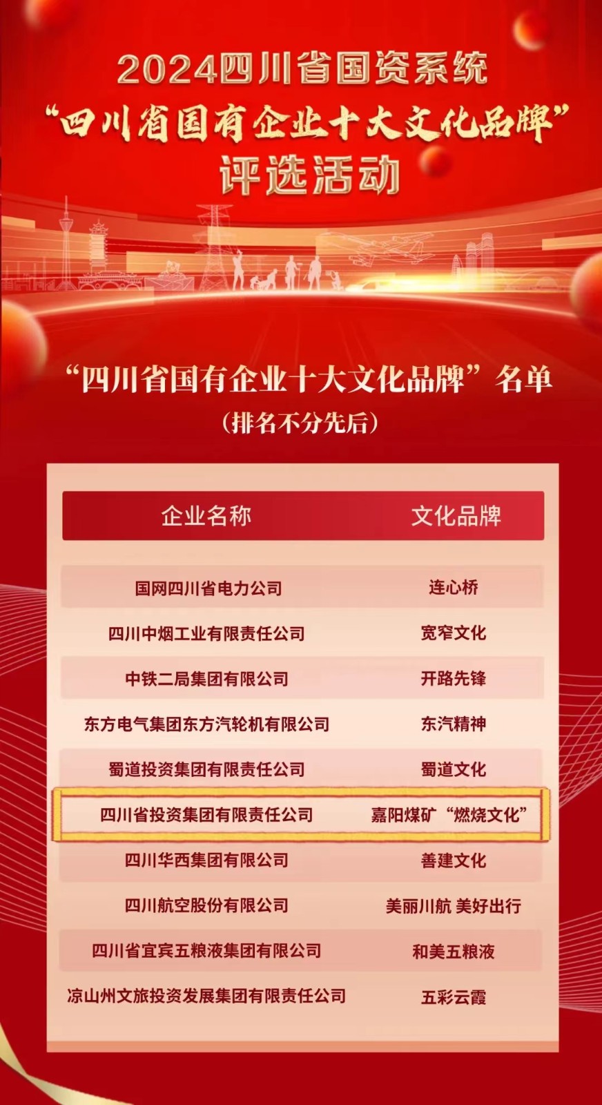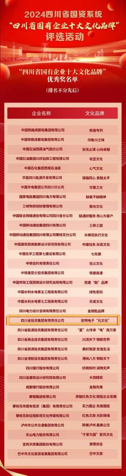 “四川省國有企業(yè)十大文化品牌”揭曉 川投集團(tuán)榜上有名