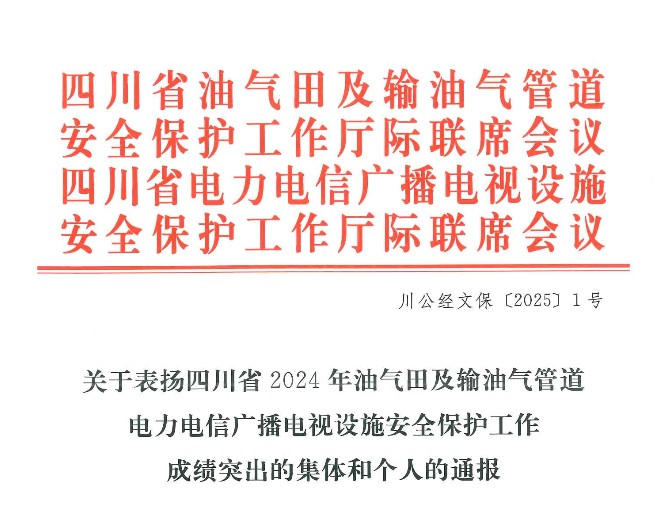 近日,四川省電力電信廣播電視設(shè)施安全保護(hù)工作廳際聯(lián)席會議通報表彰了四川省2024年油氣田及輸油氣管道、電力電信廣播電視設(shè)施安全保護(hù)工作成績突出集體和個人。集團公司將評選對象重點向基層一線單位和個人傾斜,積極開展擇優(yōu)評選推薦上報工作,川投集團所屬達(dá)州氣電公司榮獲“成績突出集體”,川投電力公司總經(jīng)理蔡承德榮獲“成績突出個人”。