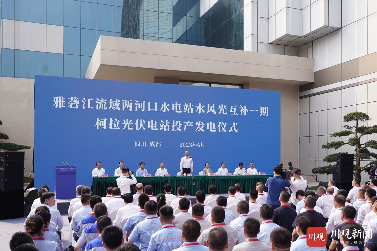儀式通過“現場+視頻連線”形式舉行,主會場設在成都市雅礱江流域水電開發(fā)有限公司,甘孜州雅江縣柯拉光伏電站現場設分會場。儀式舉行前,黃強聽取了柯拉光伏電站規(guī)劃建設情況匯報。黃強對在沖刺成都大運會籌辦工作、即將迎來迎峰度夏的關鍵時刻,柯拉一期光伏電站項目按期投產發(fā)電給予肯定并表示祝賀,向關心支持四川電力發(fā)展的國家開發(fā)投資集團、國家電網公司表示感謝,要求以電站投產發(fā)電為契機,按照“快、大、全”要求,全面落實電源電網規(guī)劃目標任務,全力推進雅礱江流域水風光一體化示范基地建設,加強水風光蓄一體化開發(fā),加快重大電網項目建設,不斷提升清潔能源供給能力,更好服務國家能源戰(zhàn)略和四川高質量發(fā)展。