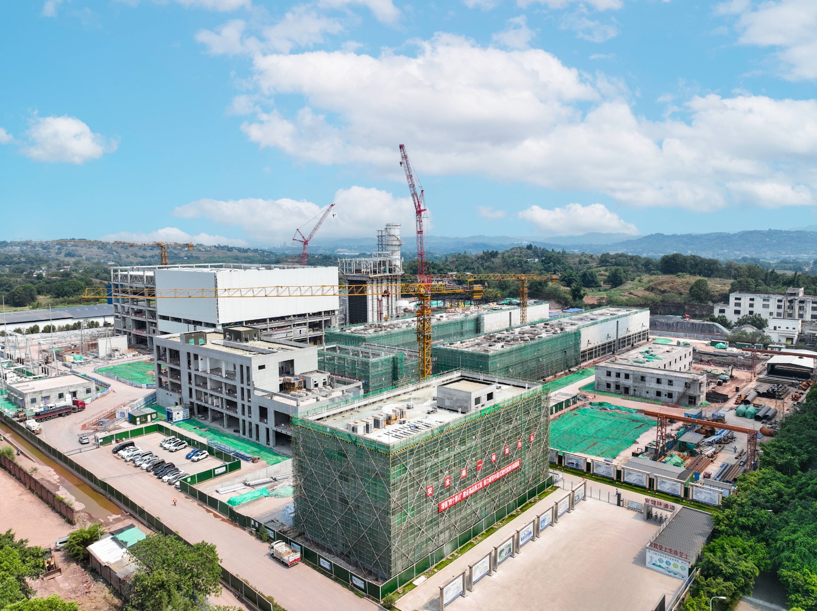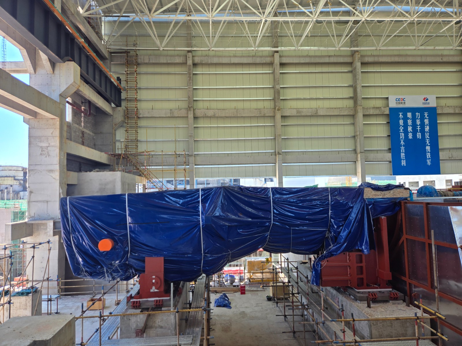 走進(jìn)川投瀘州天然氣發(fā)電項(xiàng)目現(xiàn)場(chǎng),一輛輛大貨車滿載管道材料、電儀配件、主輔設(shè)備等陸續(xù)到場(chǎng),一臺(tái)臺(tái)叉車來(lái)往穿梭不停卸貨,各類設(shè)備按工序分區(qū)域整齊堆放,技術(shù)人員在各區(qū)域穿梭,指導(dǎo)設(shè)備轉(zhuǎn)運(yùn)、安裝,現(xiàn)場(chǎng)一片繁忙卻井然有序的景象。繼1號(hào)主廠房全面止水后,項(xiàng)目進(jìn)入設(shè)備安裝的關(guān)鍵時(shí)期。在主廠房施工區(qū)域,兩臺(tái)大型行車縱橫往返,各類大型機(jī)械依次就位,燃機(jī)、汽輪機(jī)、發(fā)電機(jī)三大件的組合安裝蓄勢(shì)待發(fā);在余熱鍋爐施工區(qū)域,1號(hào)余熱鍋爐所有受熱面模塊和高、中、低壓汽包已全部吊裝就位,正朝著本體管道安裝完成的節(jié)點(diǎn)快馬加鞭;同時(shí),機(jī)力通風(fēng)冷卻塔、升壓站施工等如火如荼,項(xiàng)目進(jìn)度有條不紊、推進(jìn)迅速。