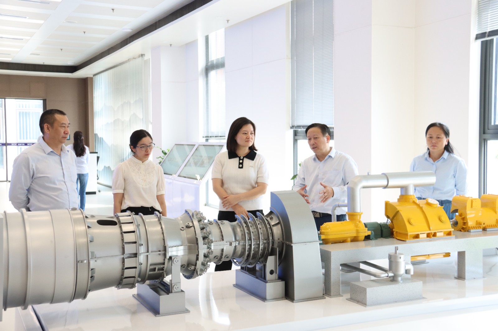宋一笑一行先后參觀了一樓展示廳、智慧管控中心、主廠房等區(qū)域,并聽過聽取匯報、現(xiàn)場交流的形式了解資陽燃氣電站項目電站建設(shè)情況及生產(chǎn)經(jīng)營情況。