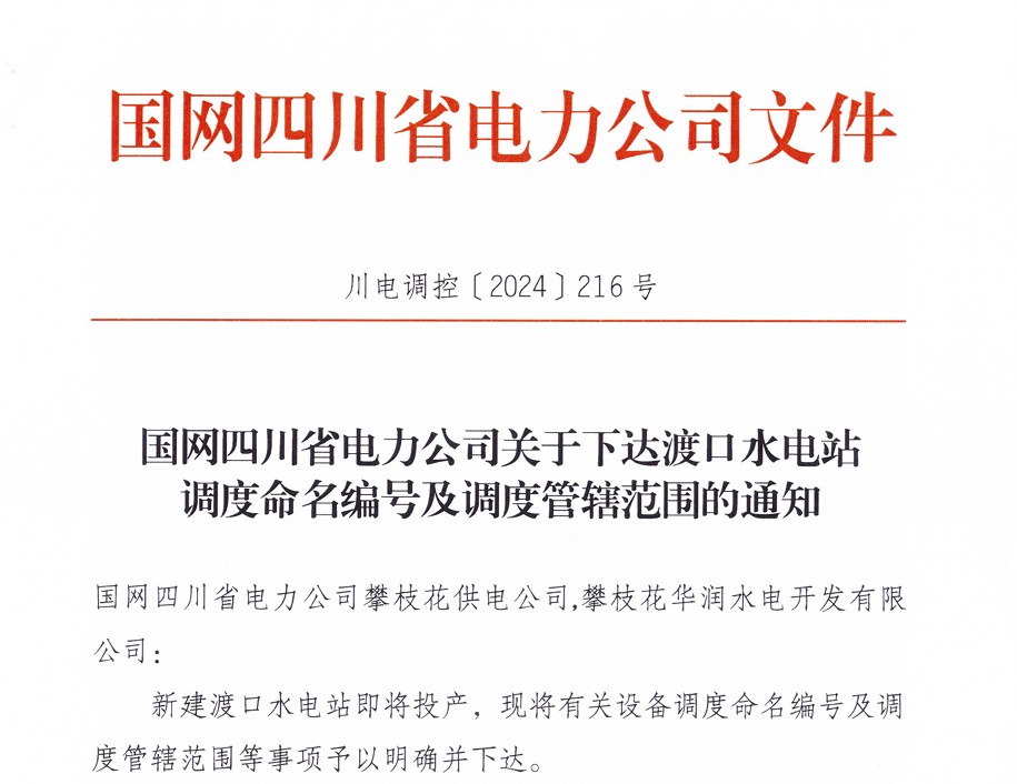 銀江水電站投產(chǎn)發(fā)電在即,因“銀江”二字已被銀江變電站占用,川投能源所屬攀水電公司動員全體員工集思廣益,挑選符合規(guī)定又有寓意的調(diào)度名。10月8日,在國網(wǎng)四川省電力公司和川投能源的指導(dǎo)幫助下,經(jīng)過積極對接、多方協(xié)調(diào),攀水電公司成功取得國網(wǎng)四川省電力公司對銀江水電站和送出線路的調(diào)度命名,銀江水電站的調(diào)度名為“渡口水電站”,銀江水電站220kV送出線路調(diào)度名為“220kV渡銀線”。