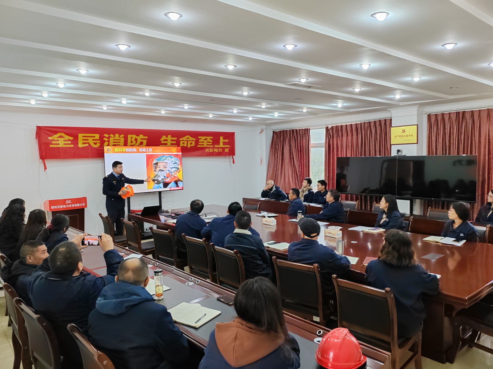 天彭電力公司邀請成都利民消防中心教官為公司員工帶來一堂生動的消防安全培訓課。通過“觀看視頻+現(xiàn)場講解+互動答疑”的方式,在普及消防法律法規(guī)制度、消防安全基礎知識、常見火災隱患自查及防范知識的基礎上,教官結合近期各地火災事故案例及員工們的工作和生活實際,以案為鑒、以案明理,向大家講述了初期火災撲救、火場逃生自救等實用性很強的避險方法,進一步強化了公司員工在動火作業(yè)等危險作業(yè)時的安全規(guī)范意識。