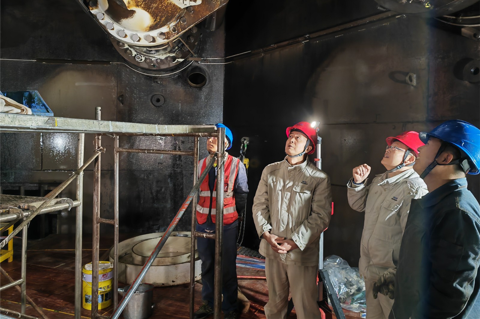 在大發(fā)電站,楊超龍重點(diǎn)查看了2號機(jī)組C修重點(diǎn)項(xiàng)目——轉(zhuǎn)輪更換工作現(xiàn)場,詳細(xì)詢問檢修人員安排、工器具準(zhǔn)備等工作落實(shí)情況,重點(diǎn)對穩(wěn)水柵間隙遮擋防護(hù)、作業(yè)現(xiàn)場照明、腳手架搭建等安全措施執(zhí)行落實(shí)情況進(jìn)行檢查。他強(qiáng)調(diào),轉(zhuǎn)輪更換屬于重大設(shè)備吊裝作業(yè),實(shí)施前務(wù)必做好作業(yè)方案、應(yīng)急預(yù)案,作業(yè)期間嚴(yán)格執(zhí)行專人安全監(jiān)護(hù)、設(shè)置警戒區(qū)域,確保吊裝作業(yè)安全、高效開展。