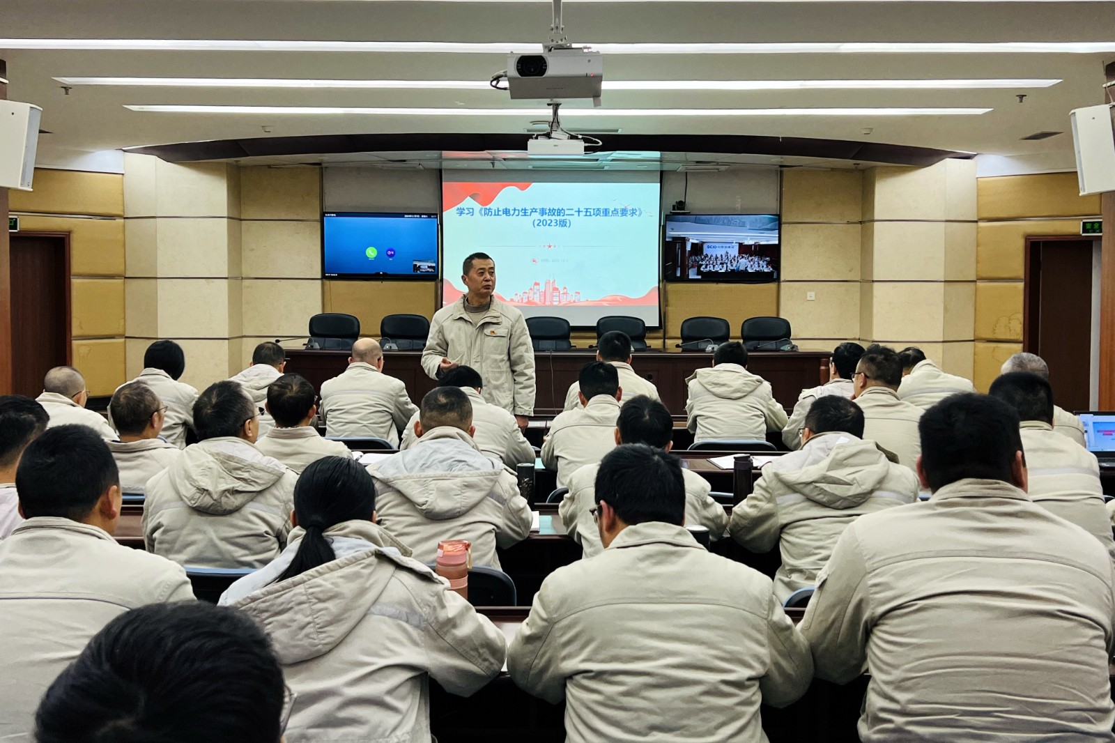 為有效提升員工應(yīng)急處置能力,提高公司電力安全生產(chǎn)管理水平,12月7日,川投田灣河公司組織召開專題培訓(xùn)會,圍繞《防止電力生產(chǎn)事故的二十五項(xiàng)重點(diǎn)要求(2023版)》(以下簡稱“二十五項(xiàng)重點(diǎn)要求”)和公司應(yīng)急預(yù)案、應(yīng)急知識進(jìn)行學(xué)習(xí)培訓(xùn)。會議由公司黨委副書記、總經(jīng)理、安環(huán)職委會主任楊超龍主持,生產(chǎn)部門全體員工參加培訓(xùn)。