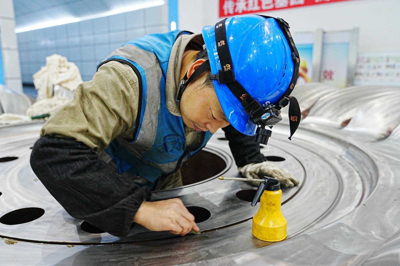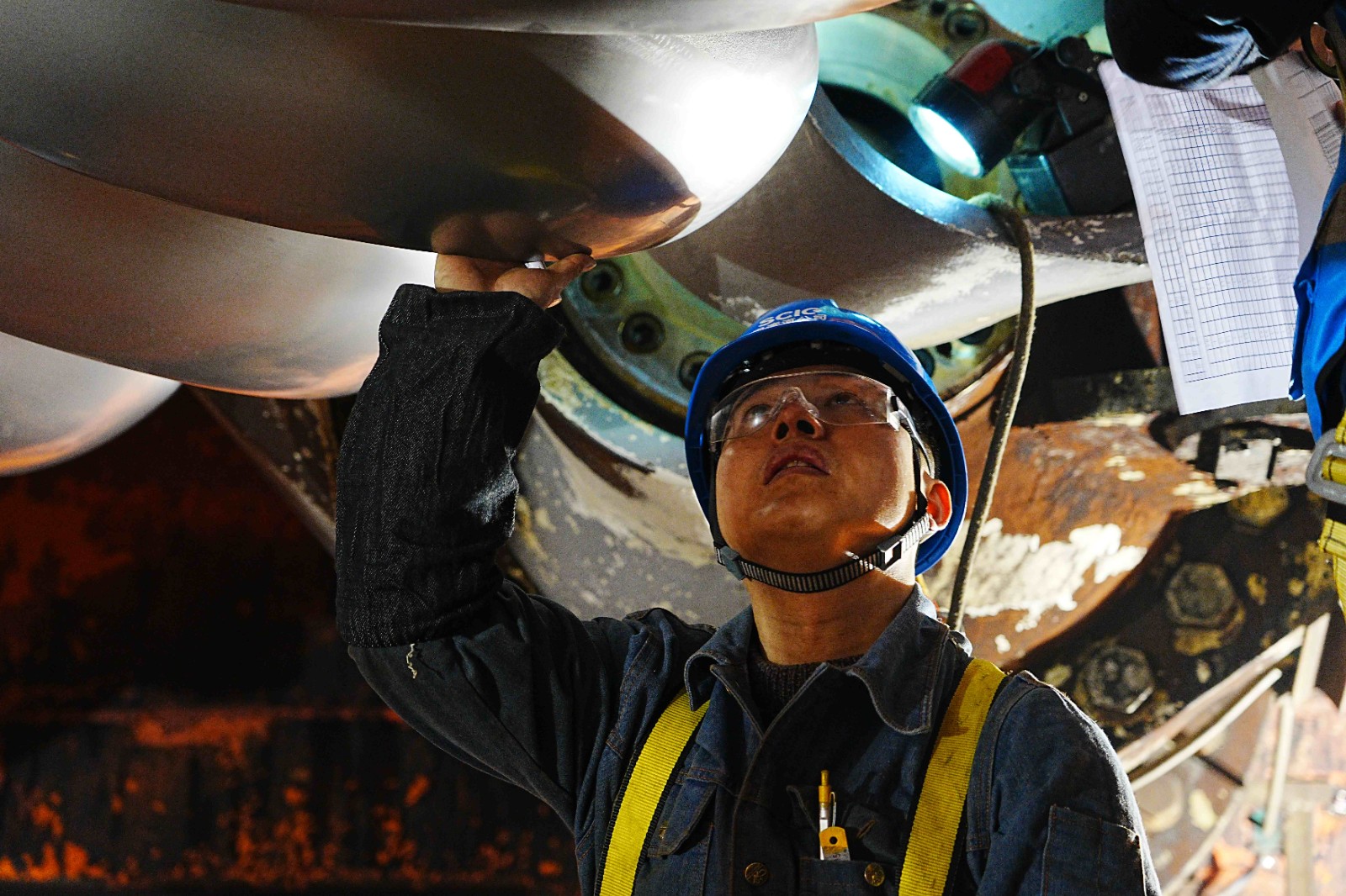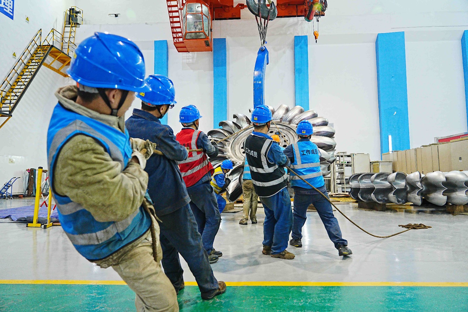 12月2日,轉輪更換作業(yè)正式開始,拆卸門板、拉伸螺栓、轉輪下放,每一項工作都有條不紊地推進。在專用工具的加持下,現(xiàn)場的轉輪翻身更成為一道亮麗的風景線。全體作業(yè)人員各司其職、緊密協(xié)作,克服環(huán)境溫度低、液壓拉伸器安裝對位難等諸多難題,經(jīng)過近8天的全力奮戰(zhàn),最終實現(xiàn)本次轉輪更換工作安全圓滿完成。