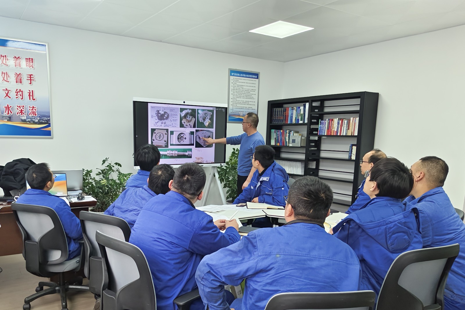 培訓(xùn)中,主講人憑借深厚的專業(yè)知識與豐富的實(shí)踐經(jīng)驗,深入剖析了汽輪機(jī)調(diào)速系統(tǒng)的工作原理、保護(hù)、試驗、設(shè)備結(jié)構(gòu)特點(diǎn)等,并結(jié)合實(shí)際案例,詳細(xì)講解了日常維保要求、常見故障的診斷及如何快速定位故障點(diǎn)的方法。借助多媒體設(shè)備,主講人將復(fù)雜的油路原理圖變得一目了然,使得培訓(xùn)內(nèi)容更易理解及接受。培訓(xùn)期間,參加人員積極互動,達(dá)到預(yù)期的培訓(xùn)效果。