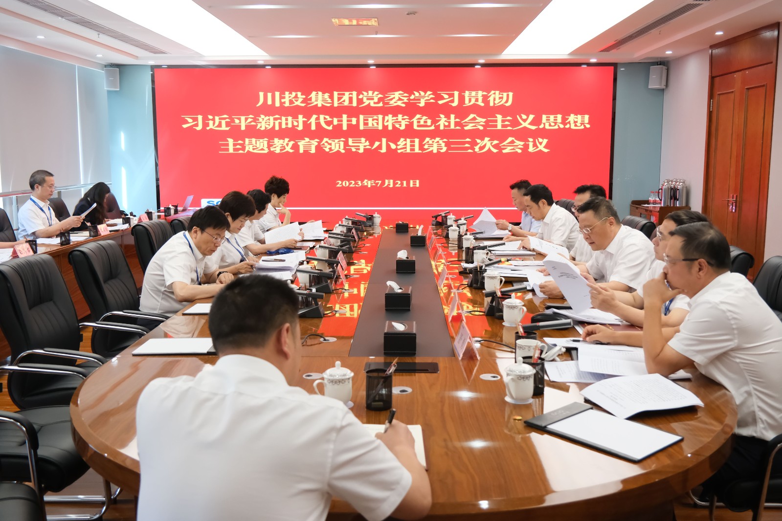 7月21日下午,川投集團黨委主題教育領導小組召開第三次會議,集團黨委書記、董事長、領導小組組長吳曉曦主持會議并講話,主題教育領導小組副組長、成員參加會議。